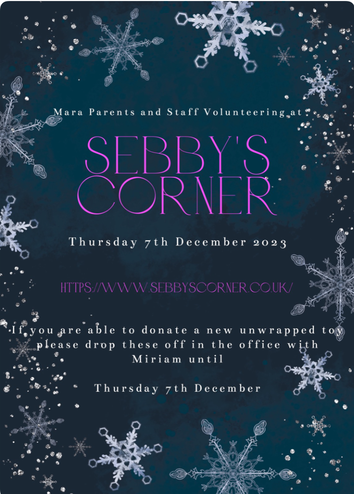 We will be collecting brand new toys to donate to Sebby's Corner this Christmas.