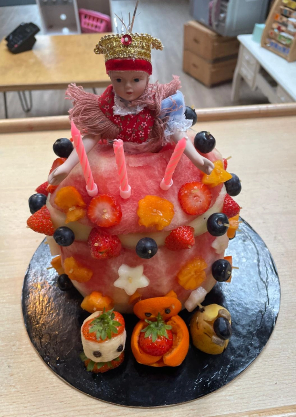 Her Fruit Birthday cakes are now legendary and she has branched out to offer these cakes for parents to purchase outside of Nursery hours!